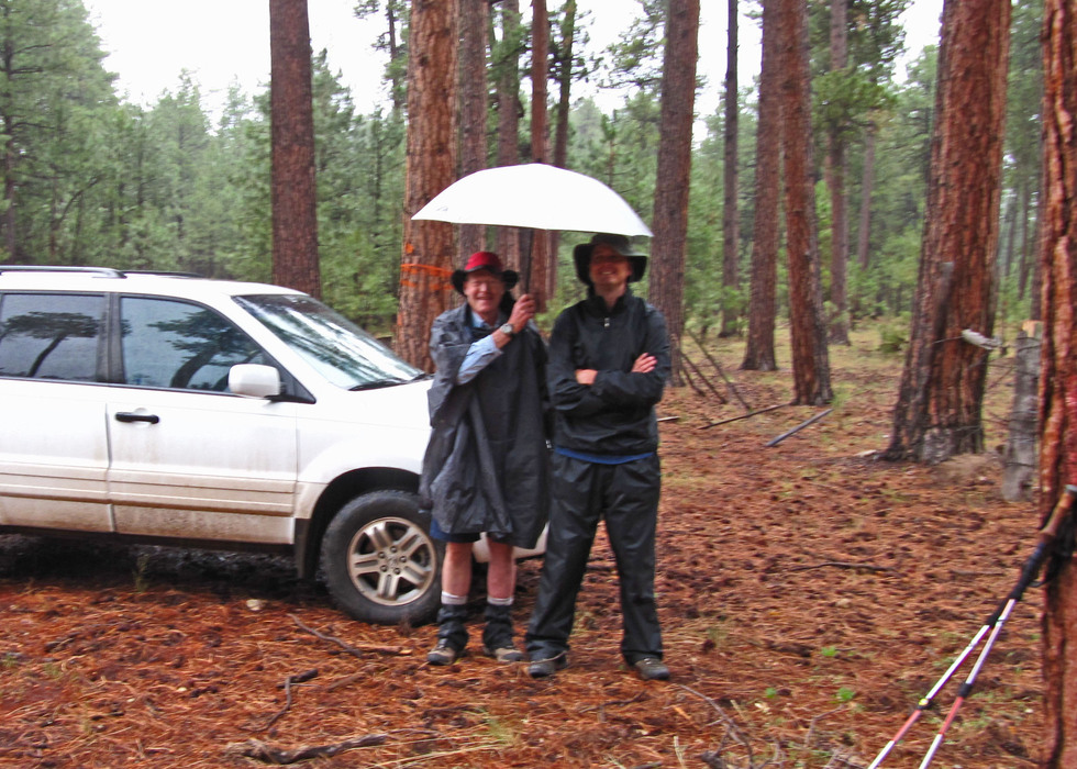 Hank and Lloyd at the start of the hike. Hank is well prepared for the rain with both poncho and an umbrella - you'd think he was from Oregon.