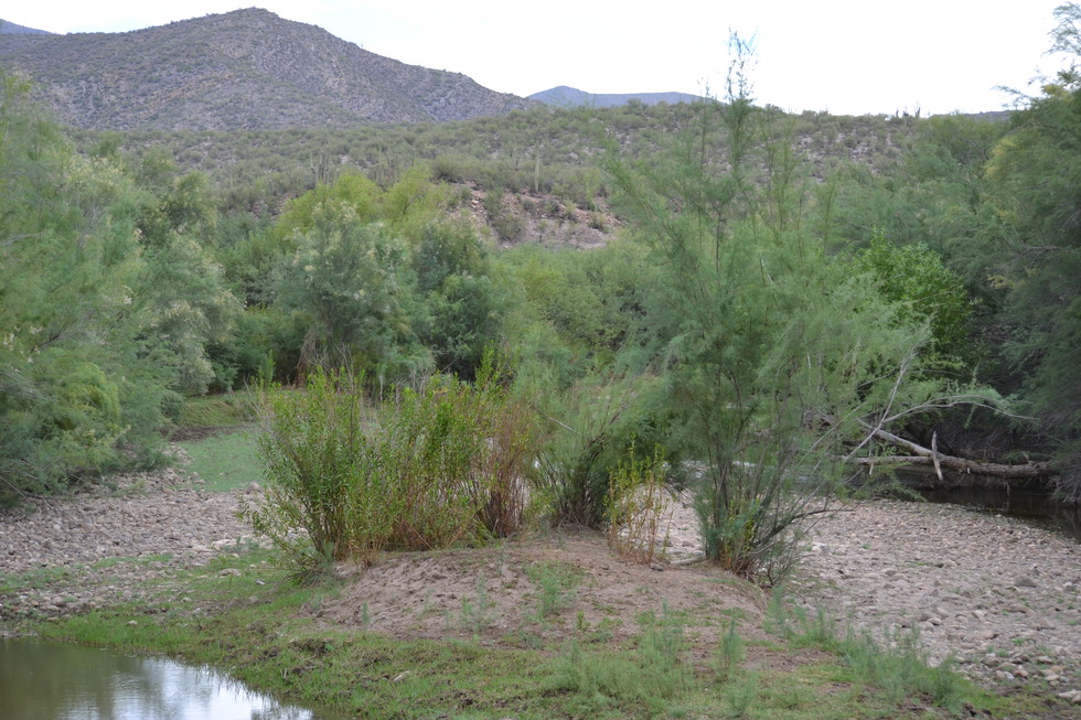 Pretty dry river bottom. There's a small pool to my left, and a little bit of flowing water to the right.
