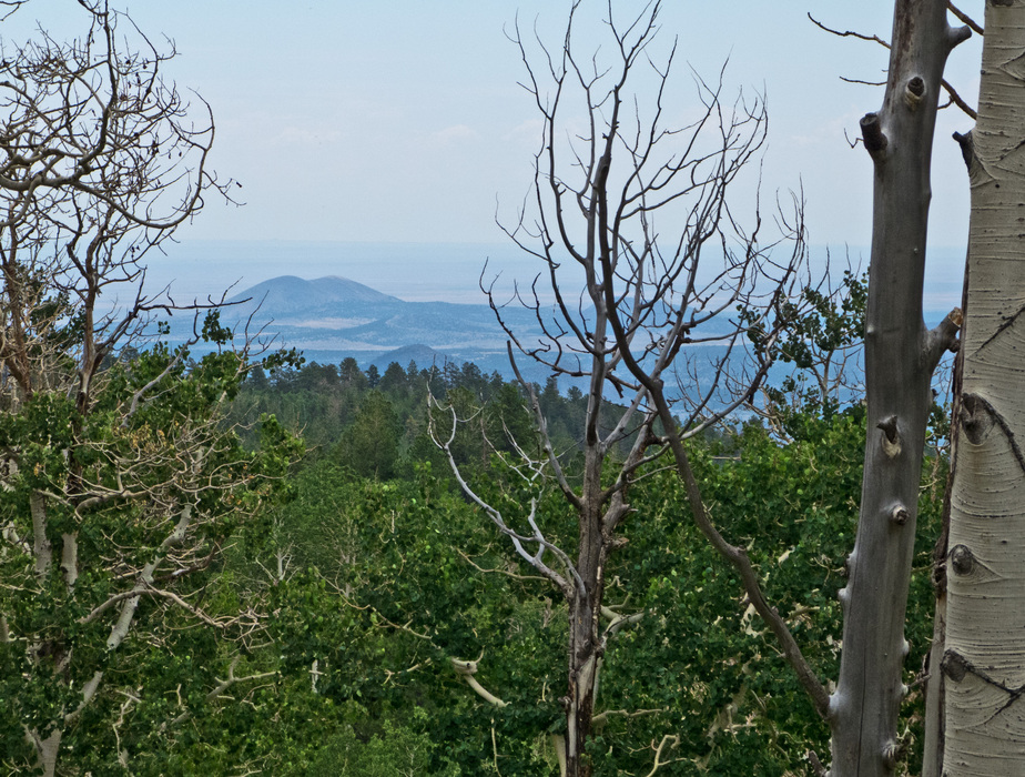 I liked this particular area that I was walking through. I took a photo but didn't post it but this is the section where there are a lot of downed aspens laying across the landscape. This, however, is a zoom east toward Sunset Crater area.