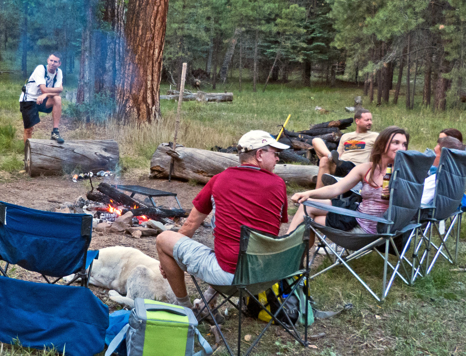 Everyone paying great attn to our leader.... but then Al_Hikes says the leader's lips are not moving.... Someone must have been strolling into camp as we had some late arrivals. (In this photo: Kai, Bruce, Liz, John, Laura, Todd and Joe)