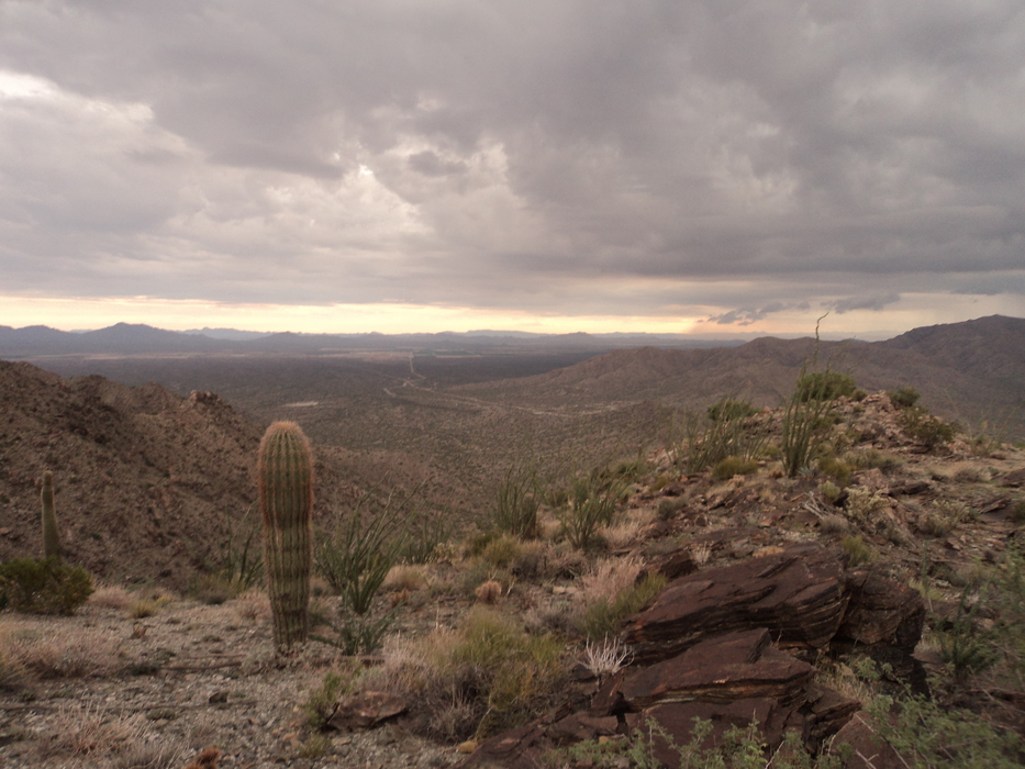 The ridge is grassy and contains elements of both the Sonoran and Mohave Deserts.
