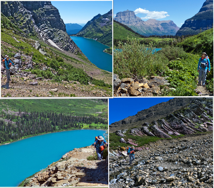 UL: Guru with Lake Ellen Wilson below. All the rest of the photos are Guru on the trail going up to Gunsight Pass