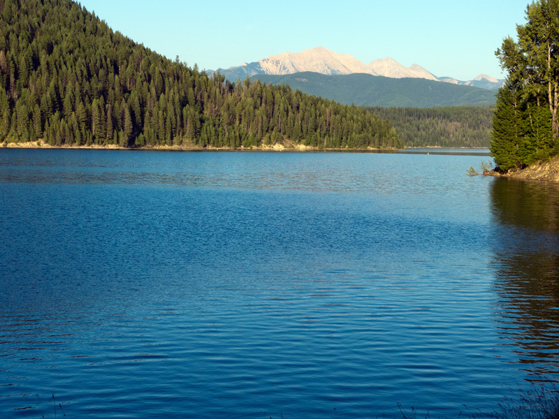 Hungry Horse Reservoir is located high in the Rocky Mountains, less than 30 miles from the Continental Divide, and is surrounded by more than 25 mountain peaks. The reservoir is about 34 miles long and offers excellent opportunities for fishing, boating, water skiing, and swimming.