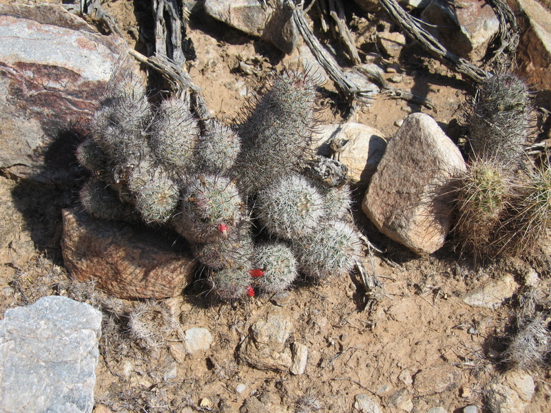 seemed like every dead cholla had a cluster of fishhook cactus under it.
