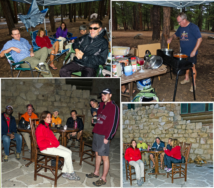 Two top pics are at our campsiet with the bottom two pics at the Lodge catching the sunset. We had a group of around 15 people I think. Some camped from Thur thru Mon nite while others only stayed thru Sun nite. One thing for sure though, the food at the camp was top notch. I think Clyde is making spaghetti. Oh, and you can see a Huckarita on the table.