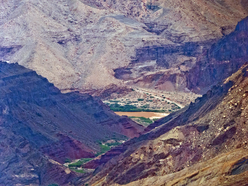 There is the Colorado River below and it looks like a creek flowing into it. Once again because I can't read a map very well, it could be either Basalt or Lava but I'm leaning toward Lava... that is if it's either one of them. The color of that butte looks dark too.