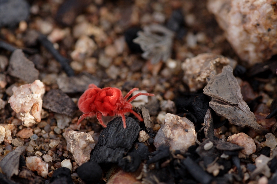 Velvet Mite - I searched for the famed love gardens or a glimps of a mating dance but not this time.
