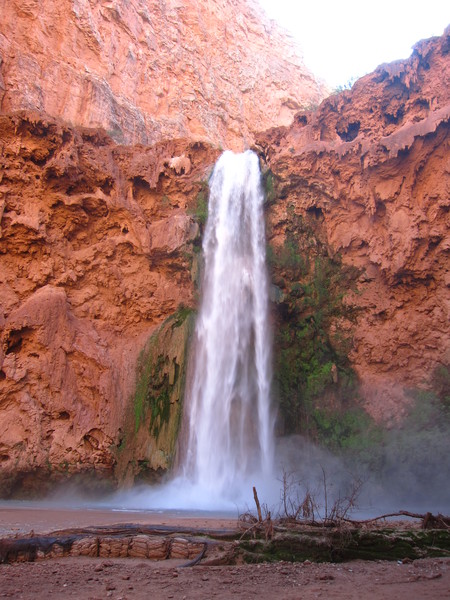 Not the prettiest image, but interesting in that it shows how nature abhors any attempt to control it... This is the last vestige of the dam that the Havasupai created in order to save the swimming hole below Mooney (http://hikearizona.com/photo.php?ZIP=105675) Now you can walk right up to the waterfall.