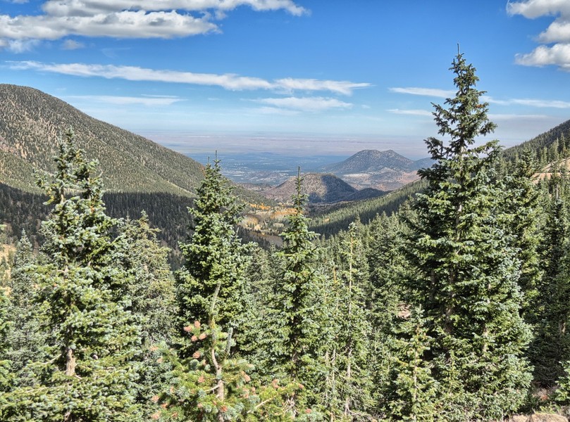 The Weatherford Trail provides a vista for peering down into the Inner Basin and Lockett Meadow below, and on northeast. I believe that the double peaked "hill" in the distance is OLeary Peak (elongated peak on left) and Darton Dome (sharp peak on the right)