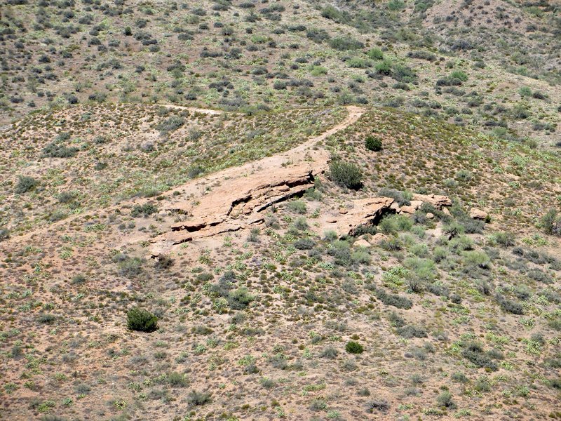 Full zoom on a rock formation below and north of Black Mesa.
