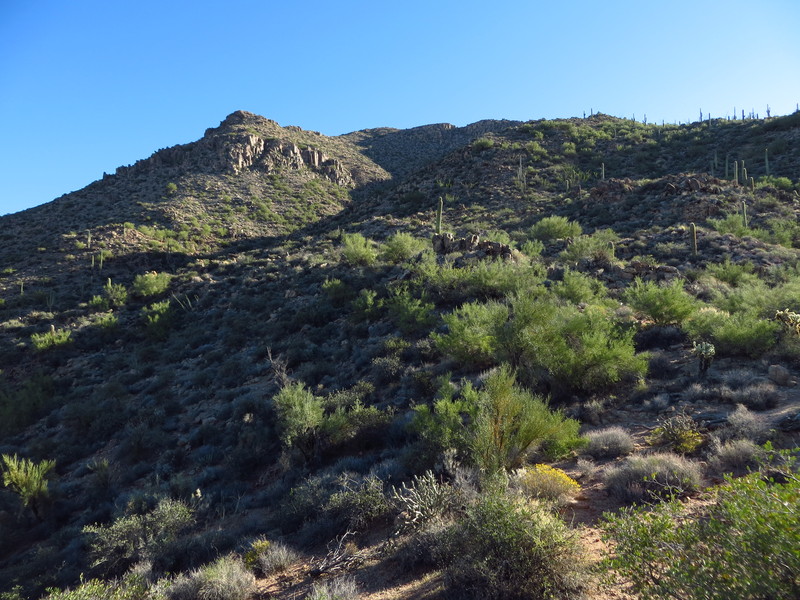 My route will follow the series rocky overlooks to the right then left to the summit.
