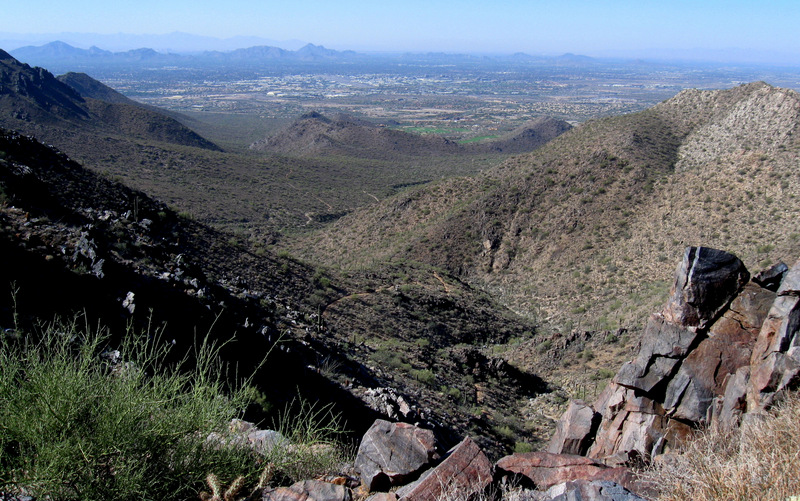 Hazy view looking out. You can see the Trail snaking through the Hills.