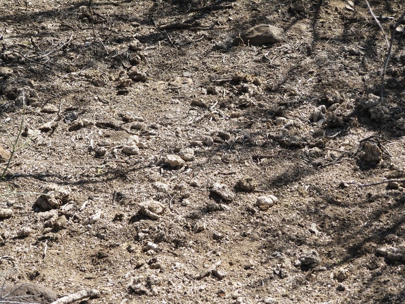 Animals had been hiding out under the large thorn bushes at the ruin site and left behind a lot of scat which indicated they were herbivores - probably javalina.