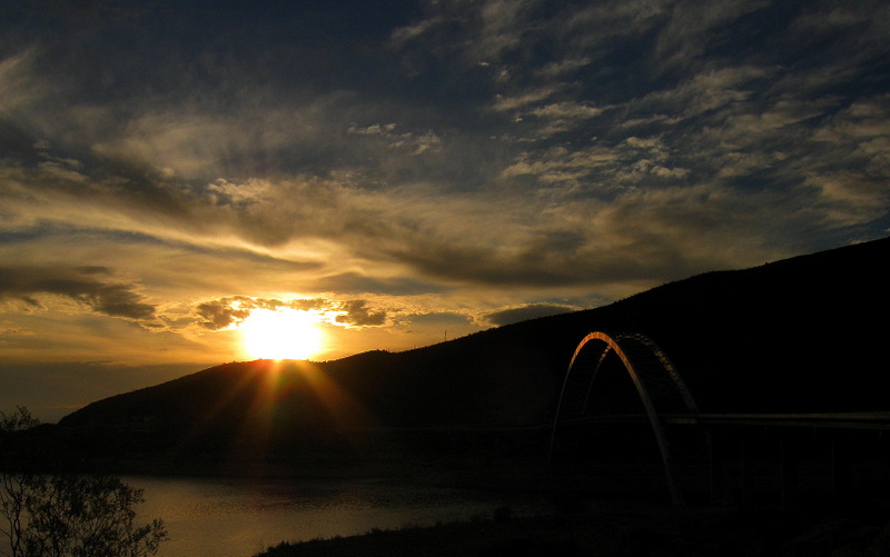 Sunrise at the Bridge on Roosevelt Lake...