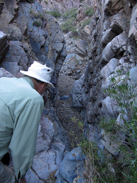 Hank thought he had found a route down this dry wash to the Salt River until he got to this point. Second stop of the day.