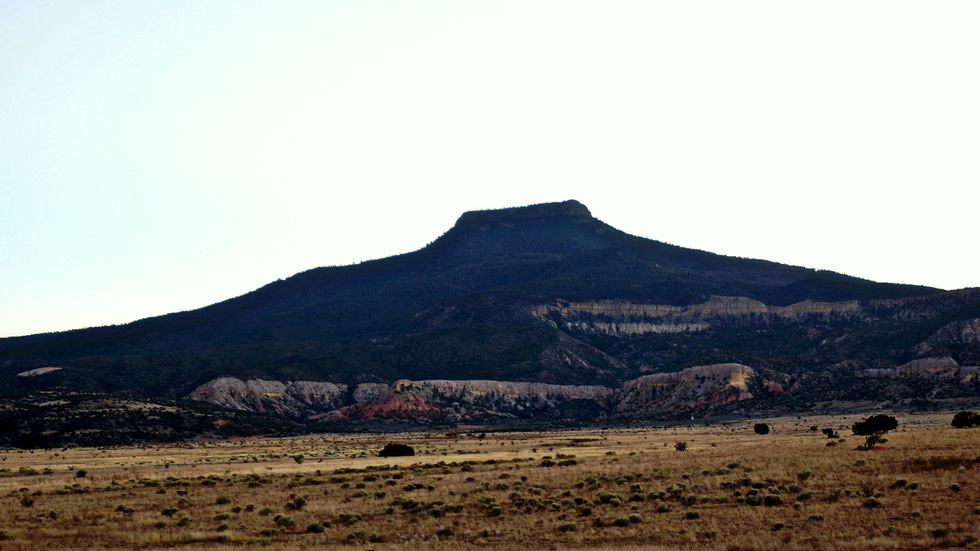 Another view of Georgia O'Keeffe's beloved Cerro Pedernal from near Youngsville. When she died in 1986 at age 98, her ashes were scattered to the wind from the peak.
