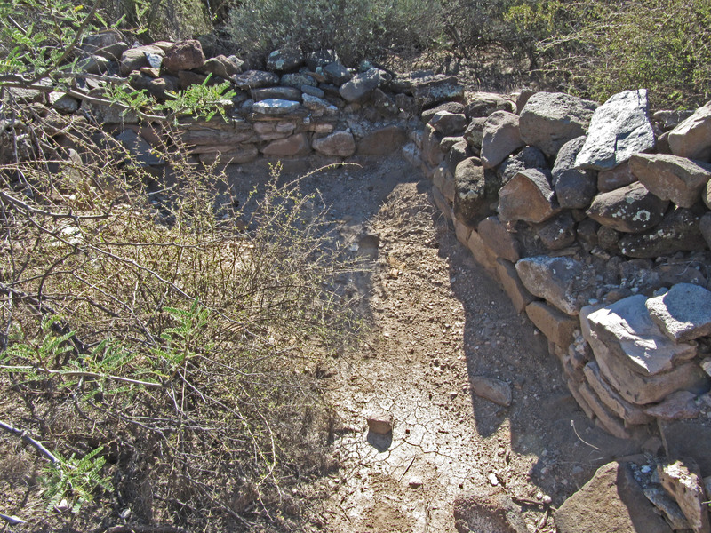 A room which has probably been partially excavated by archeologists or souvenir hunters. Note how well the bottom rocks are fit together. The more loosely stacked rocks on the top of the wall were probably placed there by whoever removed them from the interior.