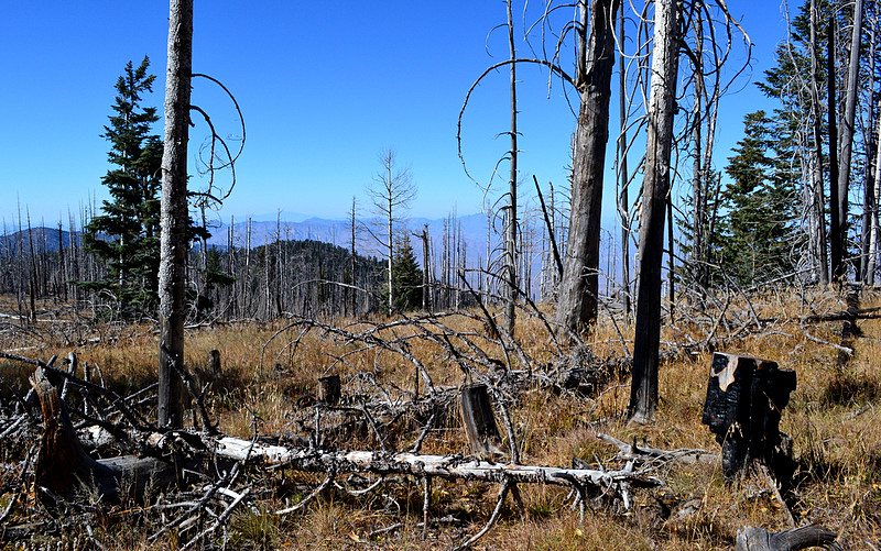 Chesley Flat trail through the burn.