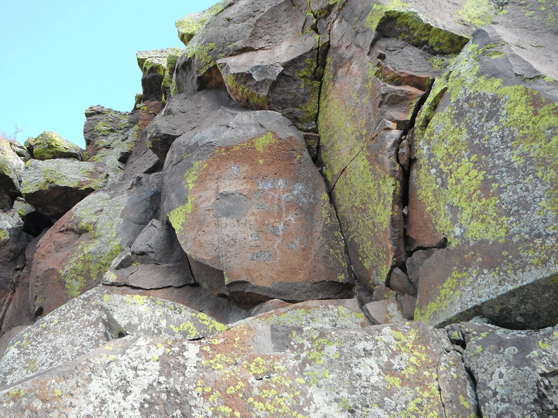 Lizard "petroglyph" decorated with paint-ball splashes.