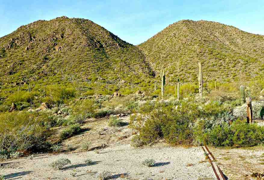 The hike is a bushwhack up, between the two mountains, and on the left side of the wash