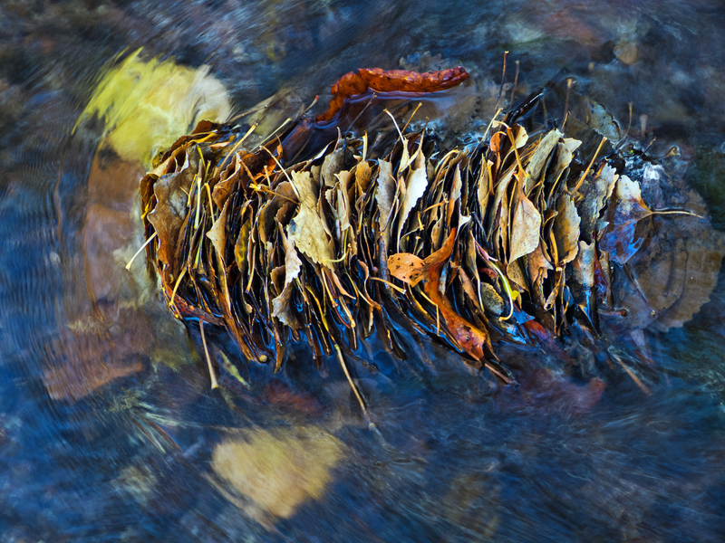 I think these bunching of leaves is so interesting and I'll never forget Derek kicking them and watching it go downstream. Pardon me for being sexist but we girls, for the most part, would just admire this lovely stack. However, I have to admit, now that I know it's okay to kick them, I did that too.