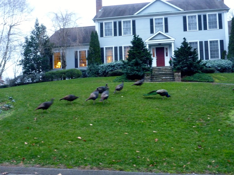 Wild turkey and feral peafowl on the front lawn!