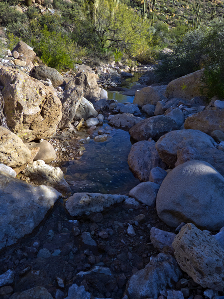 Looking along the trail. See the bubbles again. As you can see, it's a good amount of water still flowing a week after the rain.