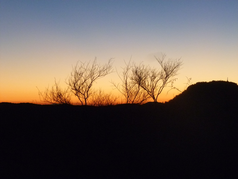 Sunrise, .75 miles from Vulture Mine Rd, at the "trailhead".