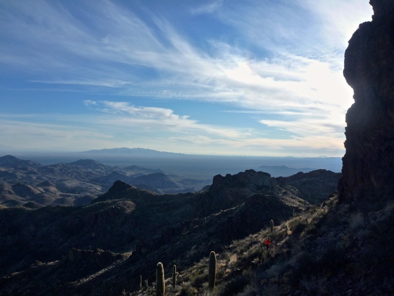 Invisible Bob making his way up the left route just below the peak. Denny decided to sit this one out.