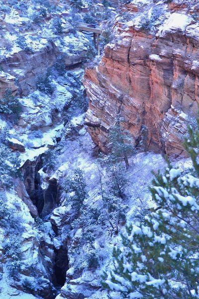 The gorge below the bridge at the east end of the tunnel (see the car on the bridge?)