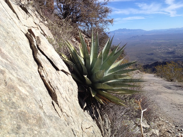A beautiful and rugged Agave chrysantha coming out of solid rock