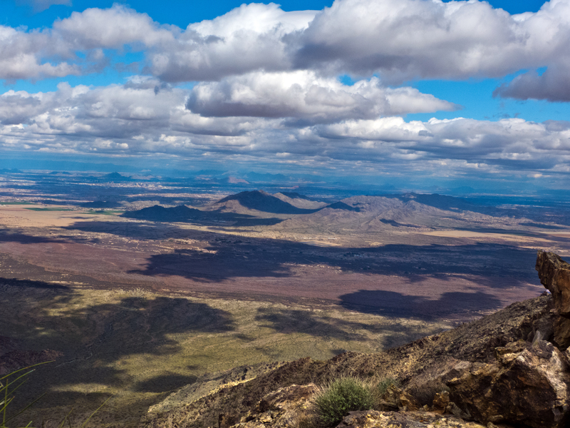 Looking toward the NE as the rays shine through the poofy clouds that are making shadows on the landscape.