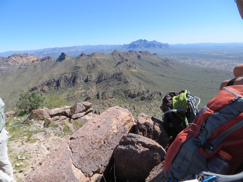 View of the Superstition Mountains on the horizon from the northeast end of the summit ridge