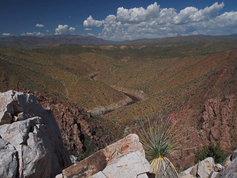 Looking north up the Salt River from the top of the White Ledges. Sierra Ancha Mtns on the left