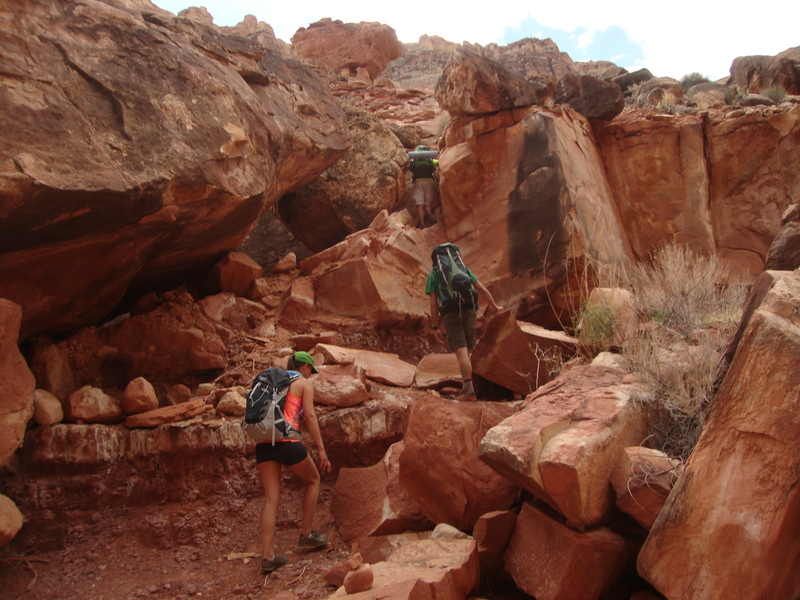 Chumley, Kyle and Rachel climbing up one of the obstacles along the route