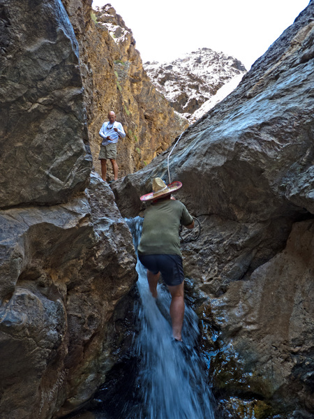 Clyde making his way up the third waterfall. He lost his footing as he topped out so it took him a bit to top out completely. I decided, since I was next in line, that I would pass. Not everyone went up this as it was a bit treacherous.