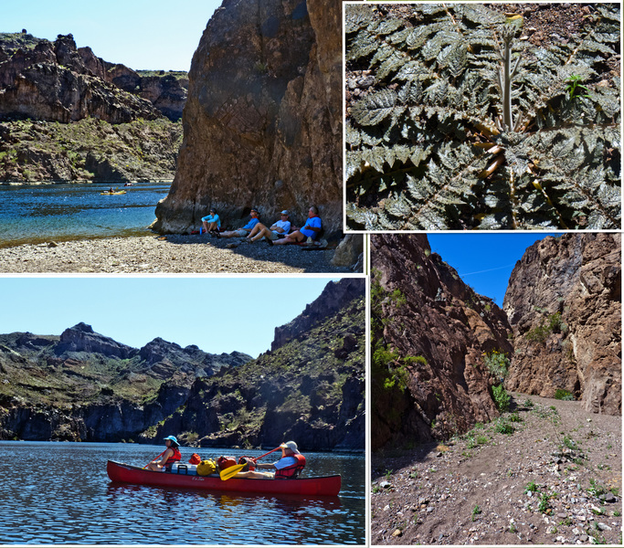 I keep wanting to call this Nesting Crane Canyon but is actually called Cranes Nest Canyon at Mile 56. We hung out here for a bit. We didn't have to be in any kind of hurry as our put out time wasn't until 4 and we only had about 3 1/2 miles left to paddle. There is camping and such allowed on this beach. It really is nice. We were intrigued by the leaf structure for the flora in the UR photo.