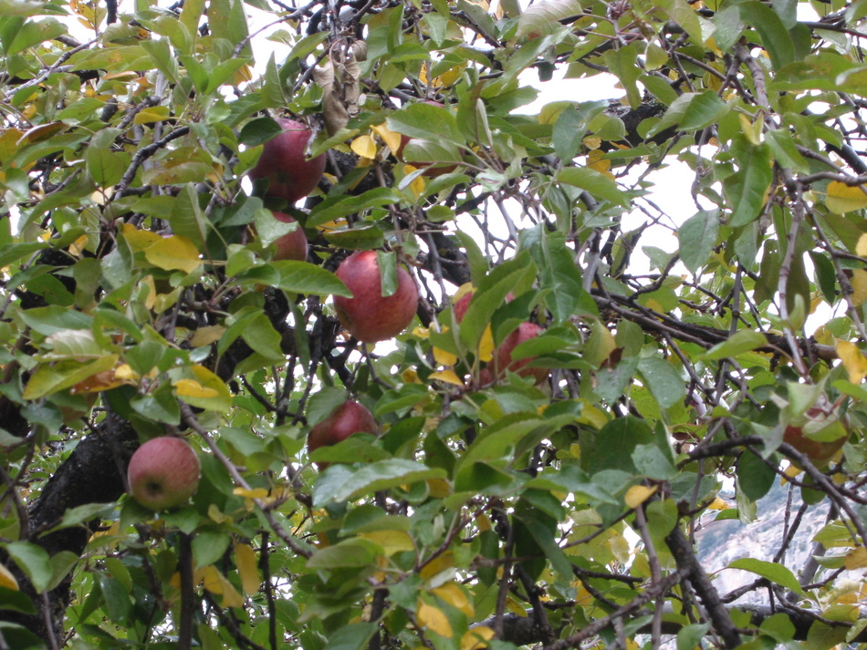 A variety of apples (This is a Winesap) are next to the parking lot;