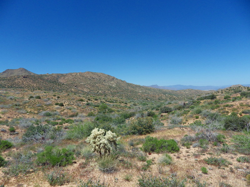 Looking N. from the saddle, going down the canyon to the right will take one to the Verde River in 4 miles.