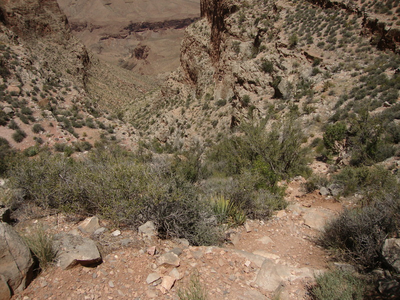 The final descent starts in the Redwall. In times like this I'm thinking "is there really a trail through this?".