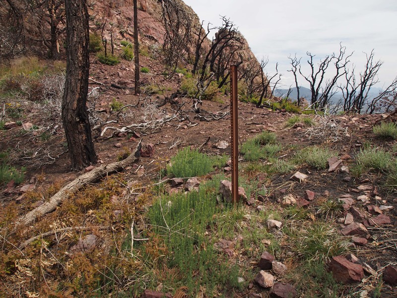 Remains of a sign post where the old pack trail crossed the saddle just below the west side of Mt Peeley. HAZ member Mazatzal saw a sign here for Thicket Spring many years ago. Traces of the old trail other than this sign post have disappeared over the years.