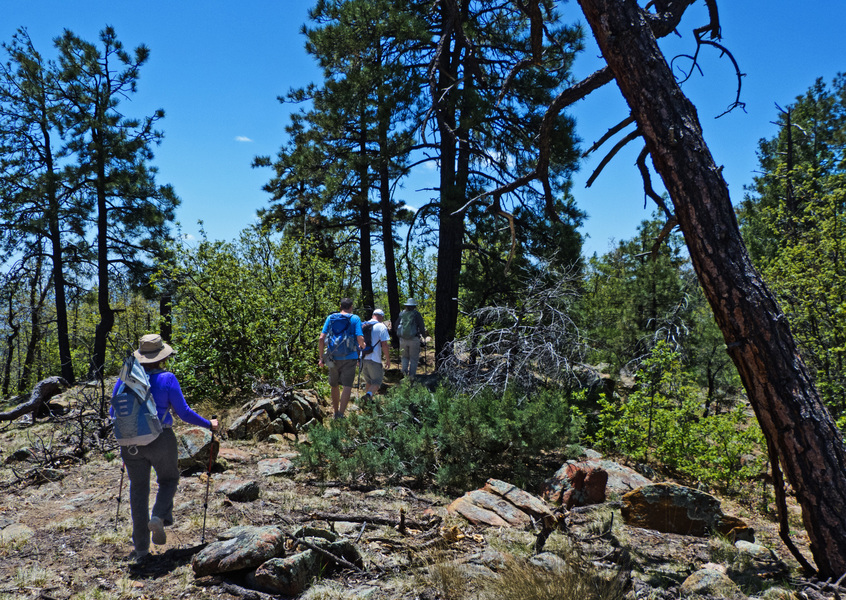 Heading back off the south side of Mount Davis with Cindy, Preston, Richard and Bobby in the lead. He found the perfect place to get over the barbed-wire fence both coming and going.