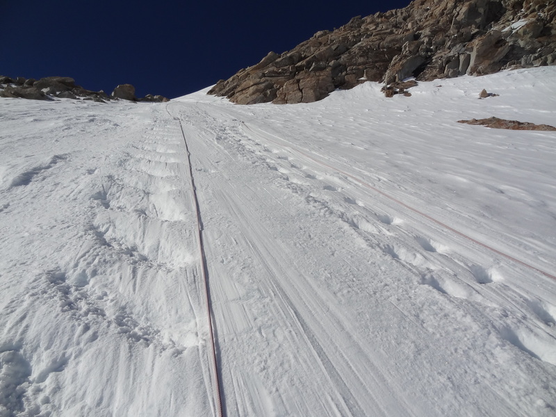 Near the top of the fixed lines, taken on the descent. The one on the right is for ascending, left is for descending