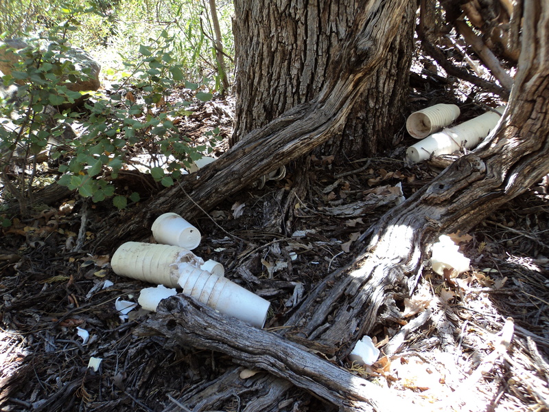 Starter pots made from Styrofoam coffee cups. There was a big nursery at this location with a bird net.