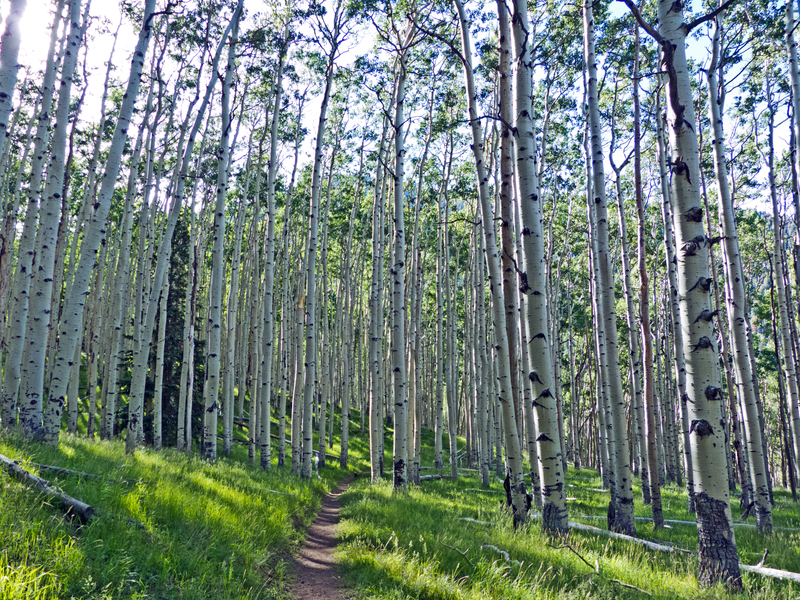 it's kind of weird how the color of the trunks can vary; we thot the trunks were mostly a tan color but the cameras sure don't shoot them that way. Now isn't that an awesome trail to hike on thru all of this for one full mile!