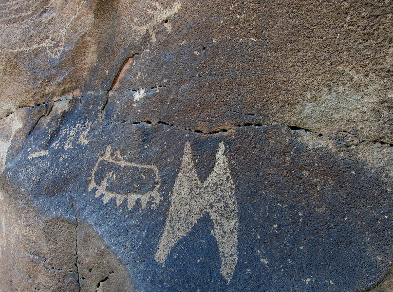 Glyphs below the ruin on the cliffband