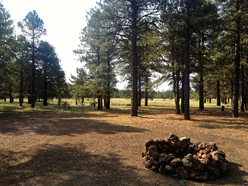Beautiful lava-rock fire ring next to a star-gazing clearing.