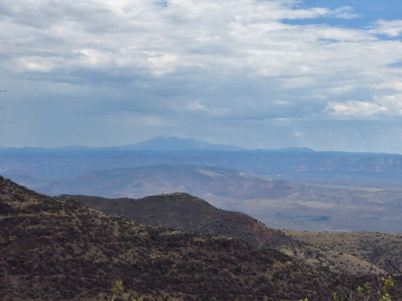 First view of the San Francisco Peaks from the trail. They had been briefly obscured earlier by the rain falling from those clouds.