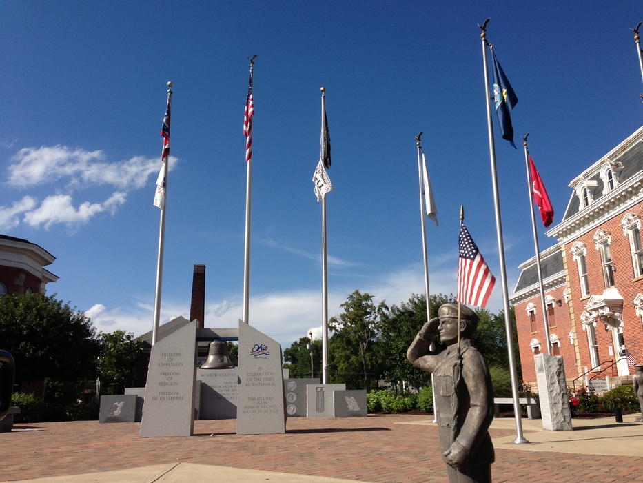 Mt. Gilead Veterans Memorial memorial plaza next to the old jail. As you can see from the soldier's head gear, the plaza is fairly new. I'll never forgive the Army for giving berets to any snuffy who manages to finish basic training -- it's like giving gold stars for participation to kindergarteners.