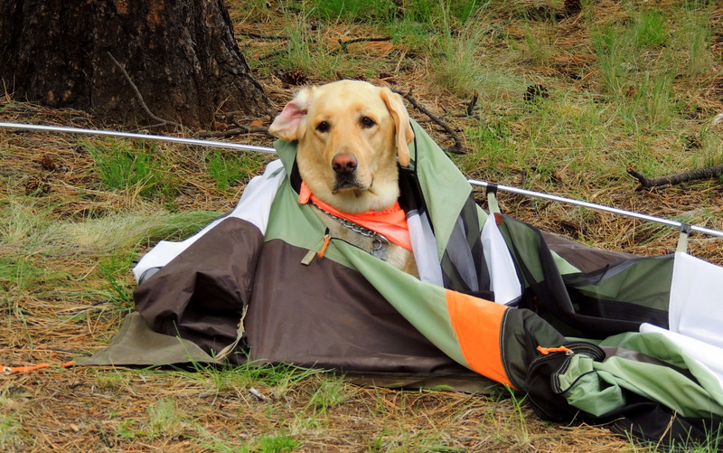 All day Thursday, Bruno did not stop...Even after Hiking.....Friday, Bob took him for two more Hikes and that did it...After attempting to break into the Tent, that was zipped up, Bob let him go in the Tent to go to Bed...He was literally nodding off with his head up...When it was time to take the Tent down and go, Bruno wouldn't have it, so Bob dismantled the Tent around him...I think Bob said Bruno ended up sleeping all the way home...Kudos to Bob for managing to wear out a Lab....